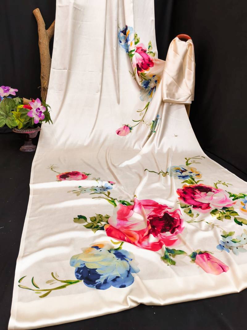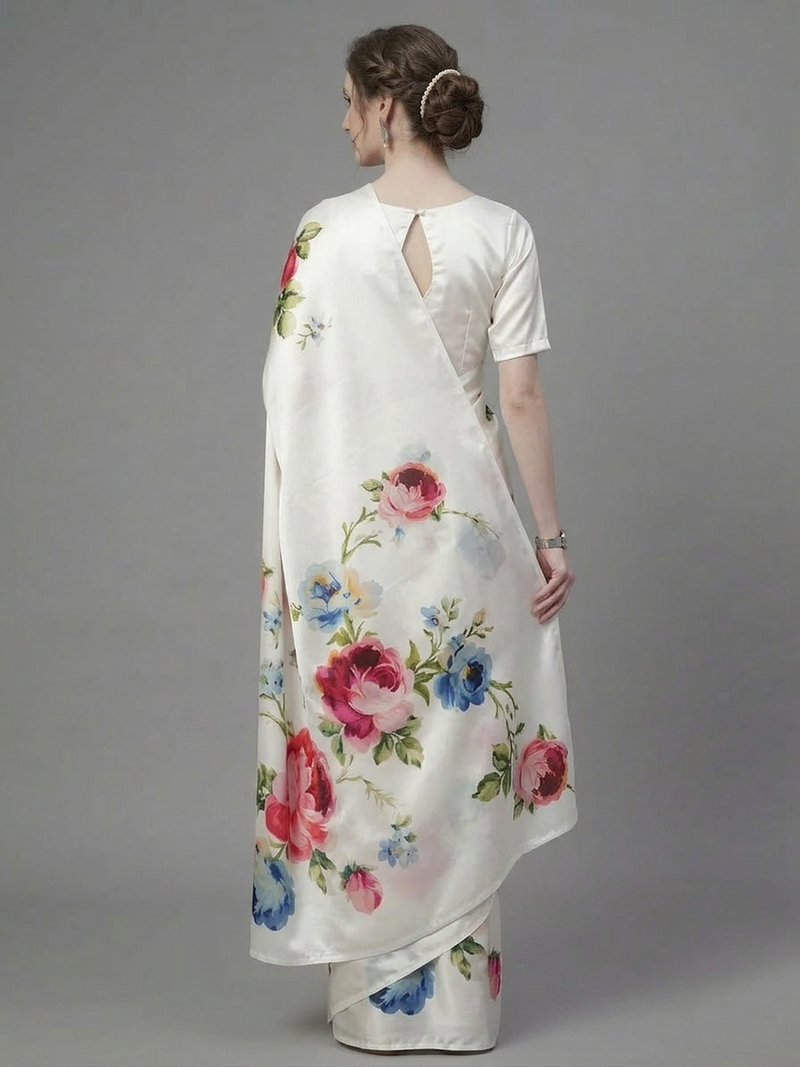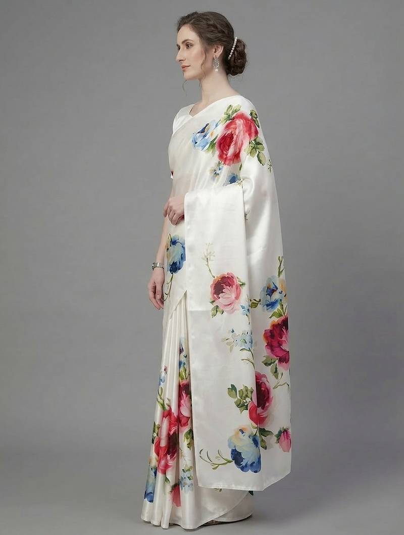 | Product Name | White Printed Satin Saree With Blouse Piece | |