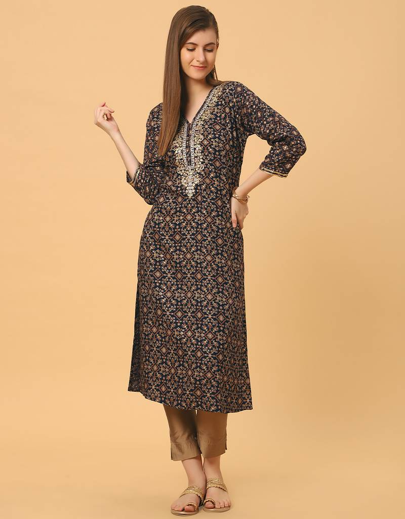 | Product Name | Black Viscose Three Quarter Sleeves Long Kurta | |