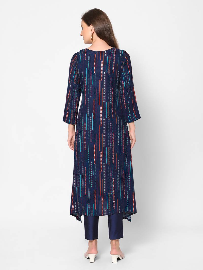 | Product Name | Blue Viscose Three Quarter Sleeves Long Kurta | |