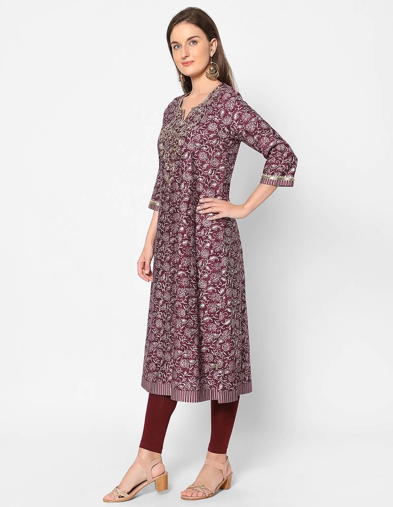 | Product Name | Maroon Viscose Three Quarter Sleeves Long Kurta | |