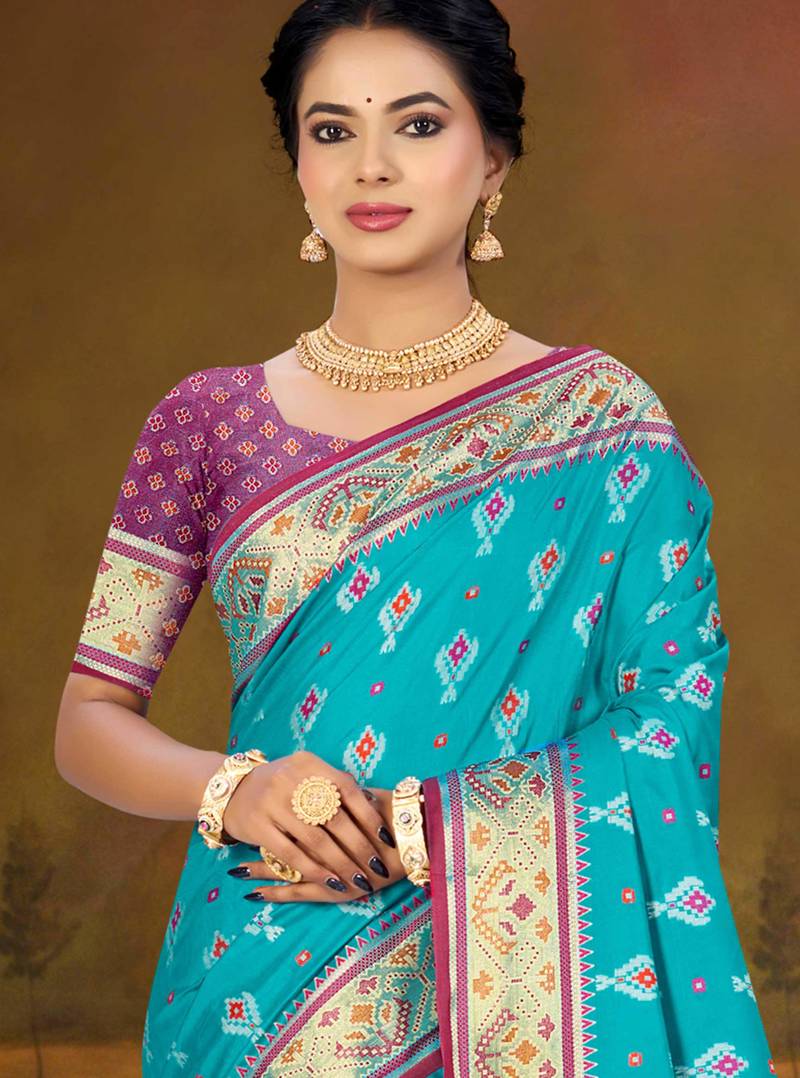 | Product Name | Aqua Blue Patola Silk Blend Woven Work Traditional Saree | |