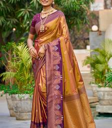 Copper gold soft silk woven work traditional saree