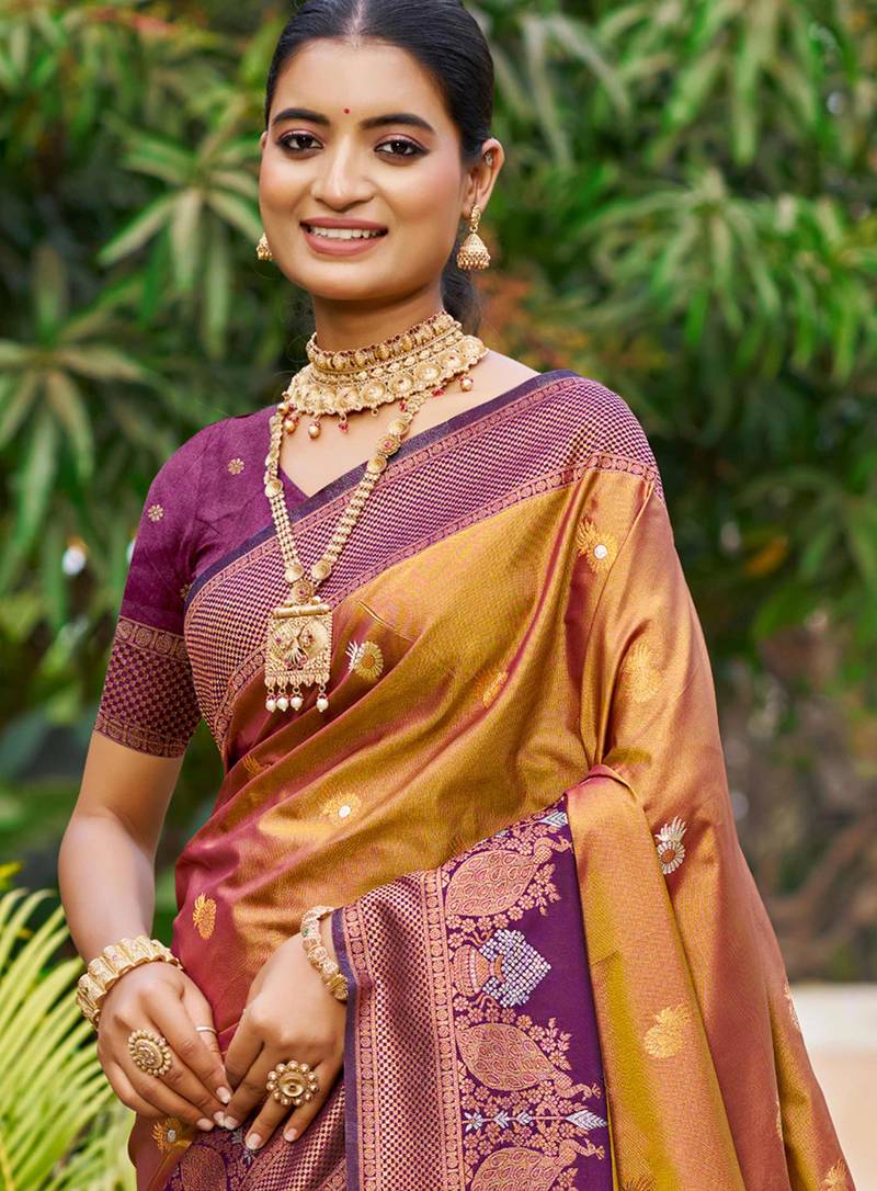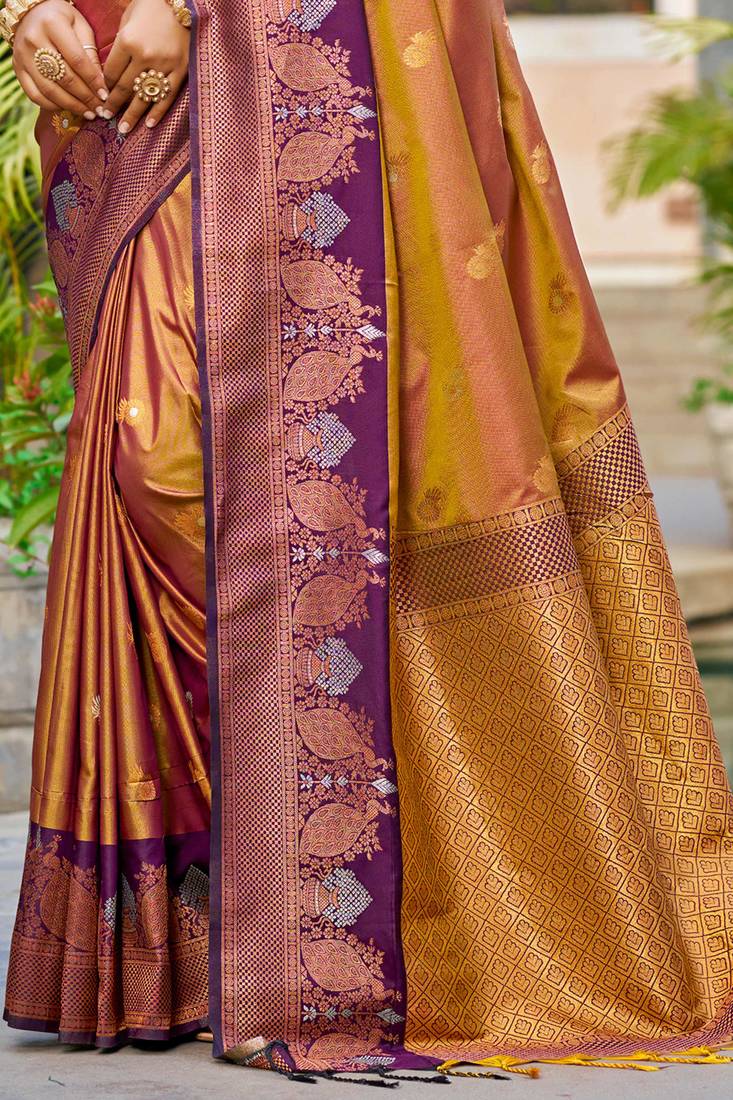 copper gold soft silk woven work traditional saree