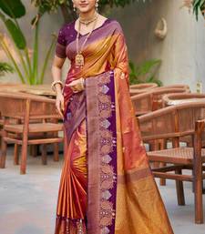 Copper gold soft silk woven work traditional saree