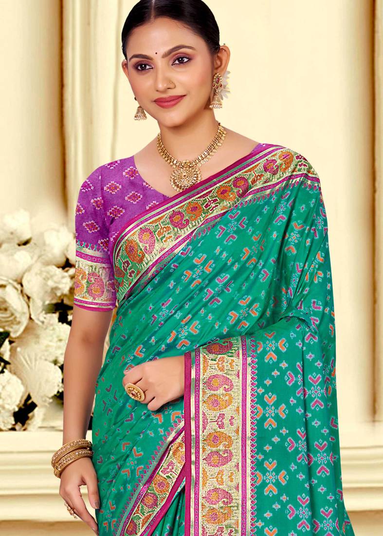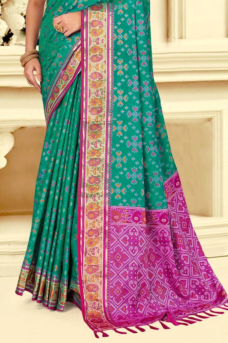 Product Name Emerald Green Patola Silk Blend Woven Work Traditional Saree