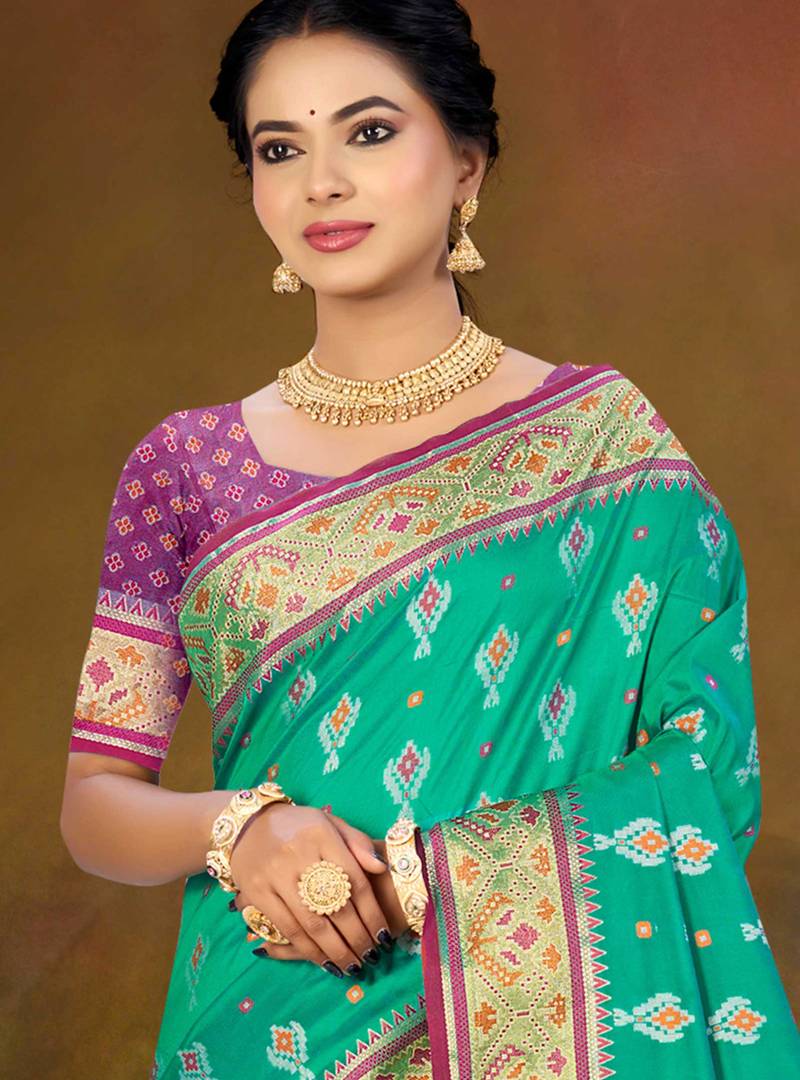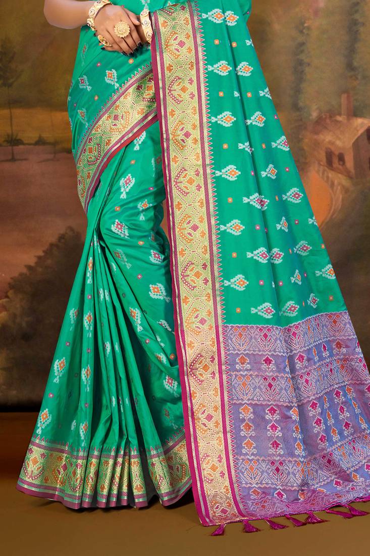 Product Name Emerald Green Patola Silk Blend Woven Work Traditional Saree