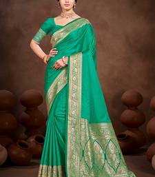 Emerald green silk blend woven work traditional saree