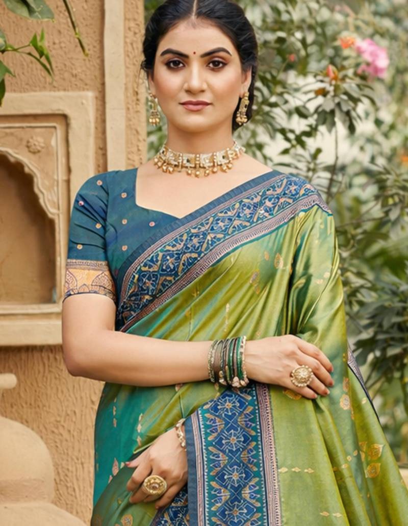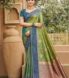 Green soft silk blend woven work traditional saree