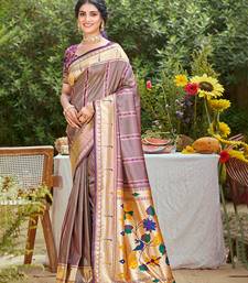 Mauve silk blend woven work traditional saree