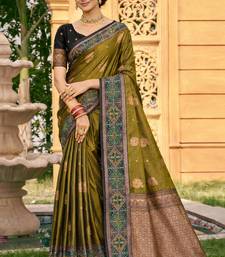 Sangam prints mehendi olive soft silk woven work traditional saree