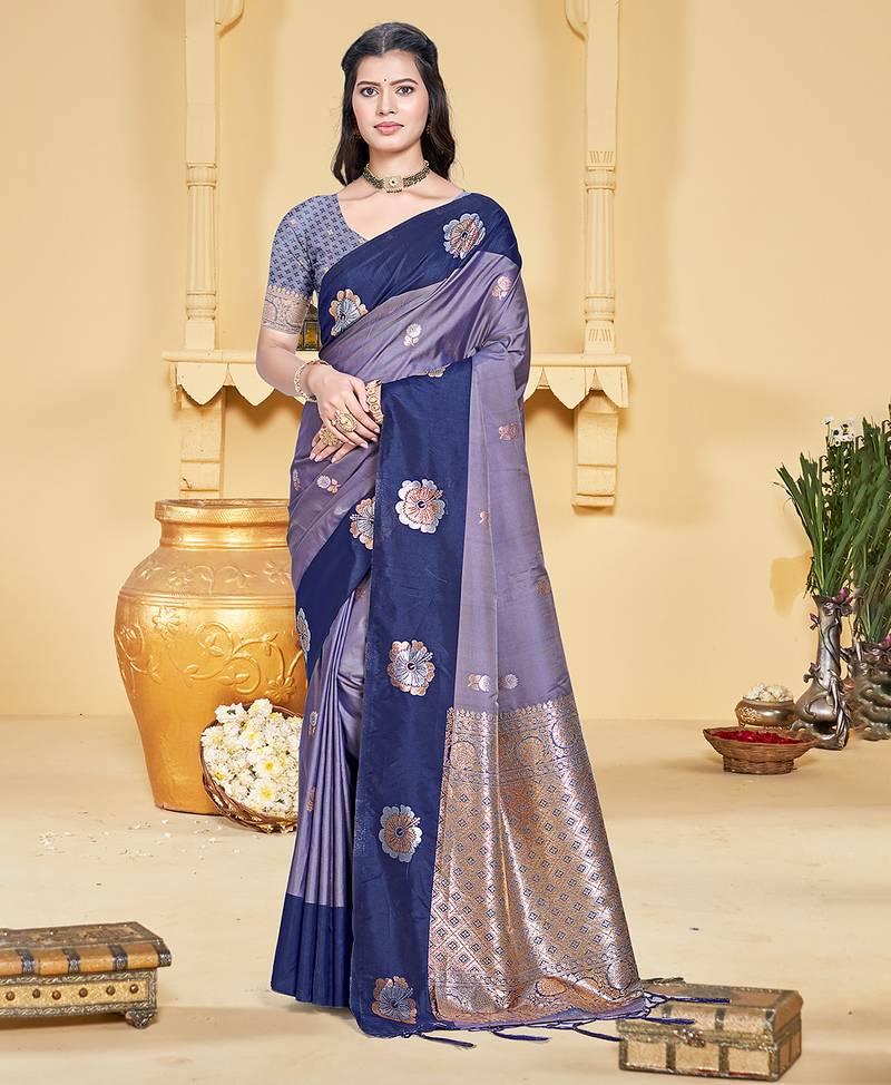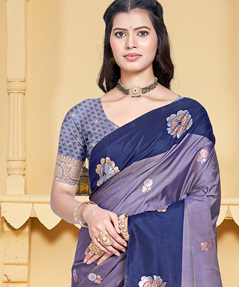 NavyBlue silk blend woven work traditional saree