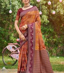 Orange soft silk blend woven work traditional saree