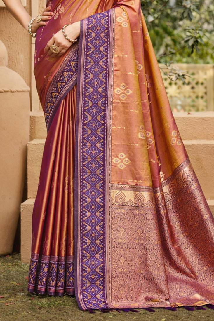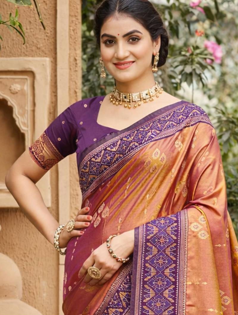 Orange soft silk blend woven work traditional saree