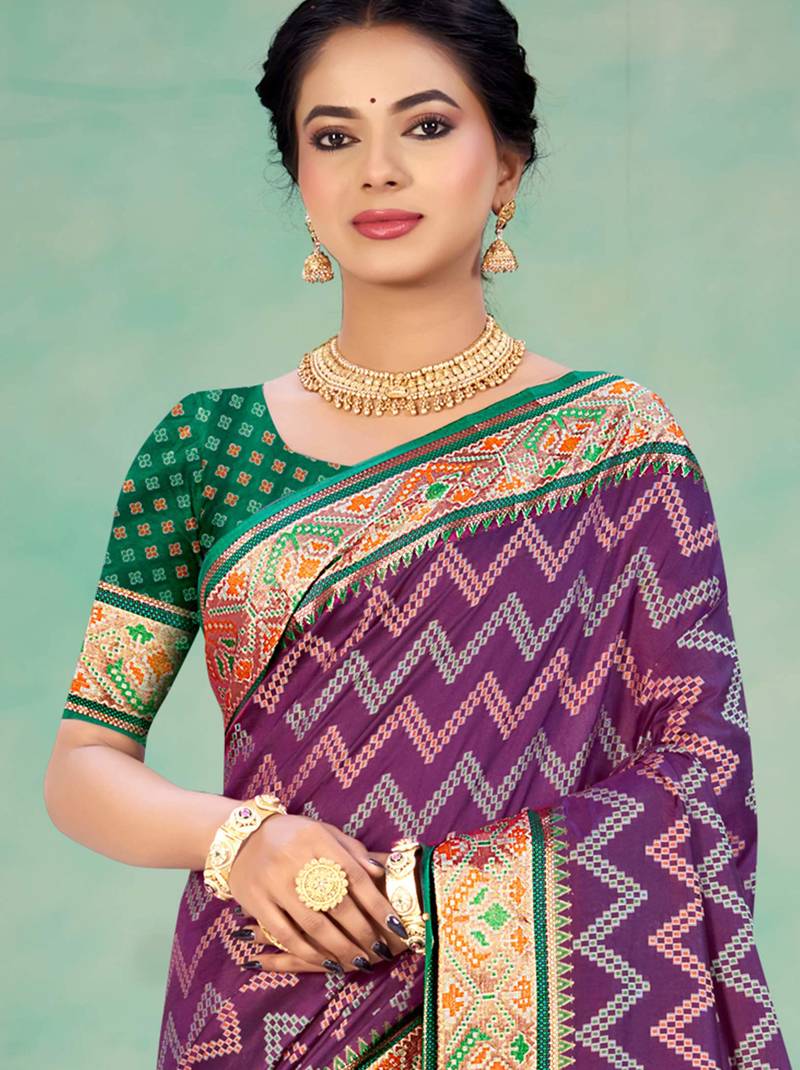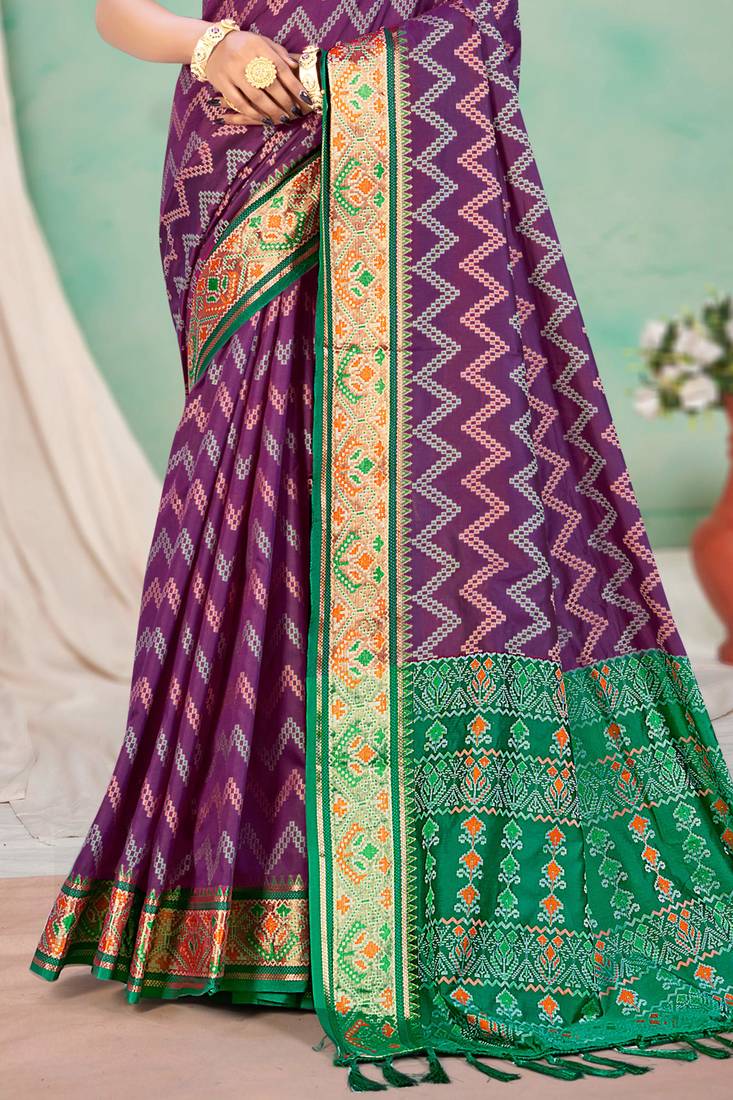 Purple patola silk blend woven work traditional saree