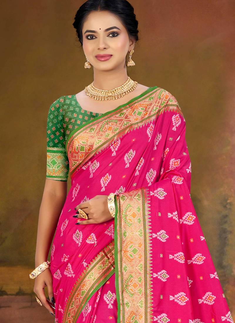 Product Name Rani Pink Patola Silk Blend Woven Work Traditional Saree