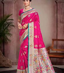 Rani pink satin silk blend woven work traditional saree