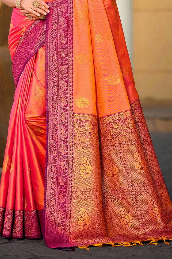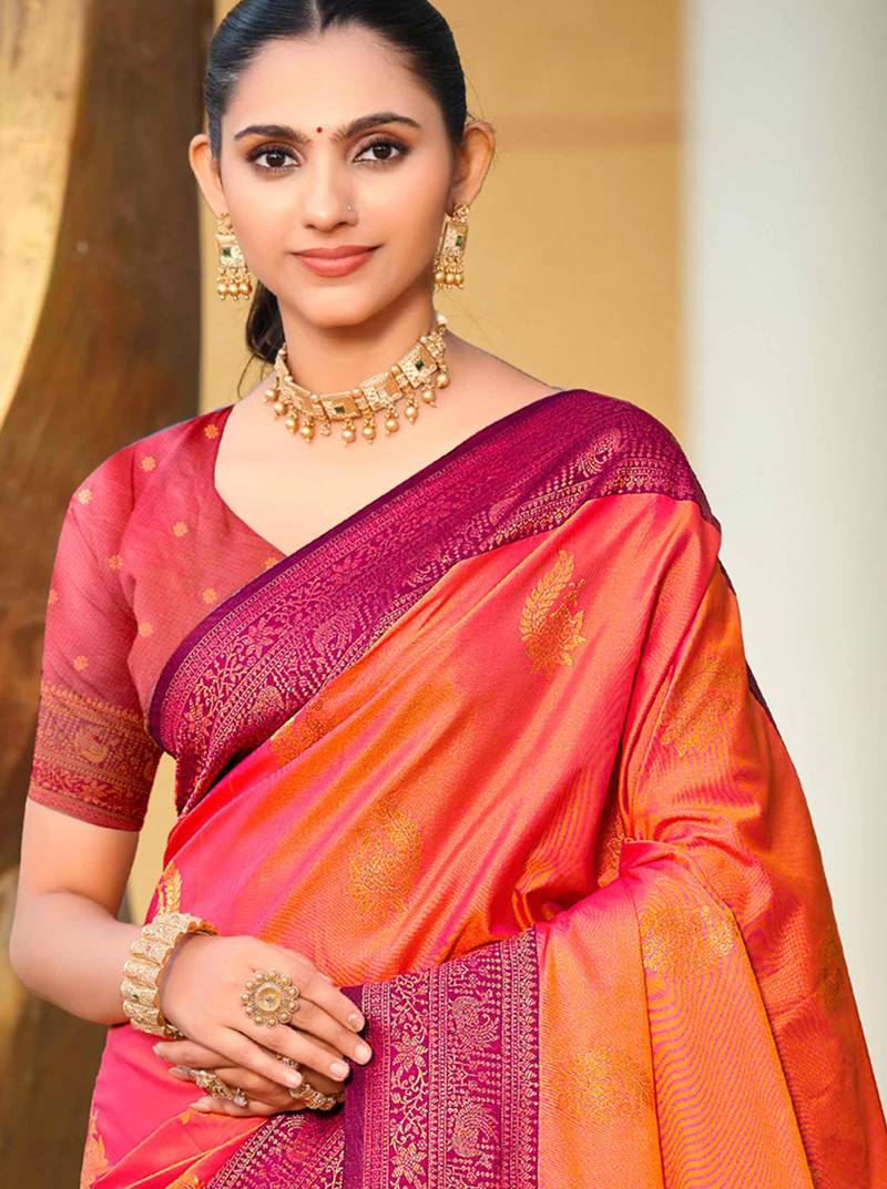 Rani pink soft silk woven work traditional saree