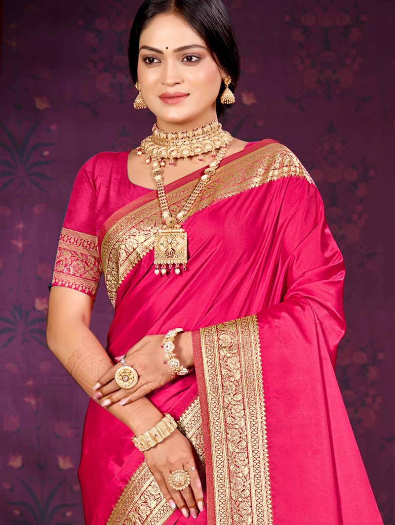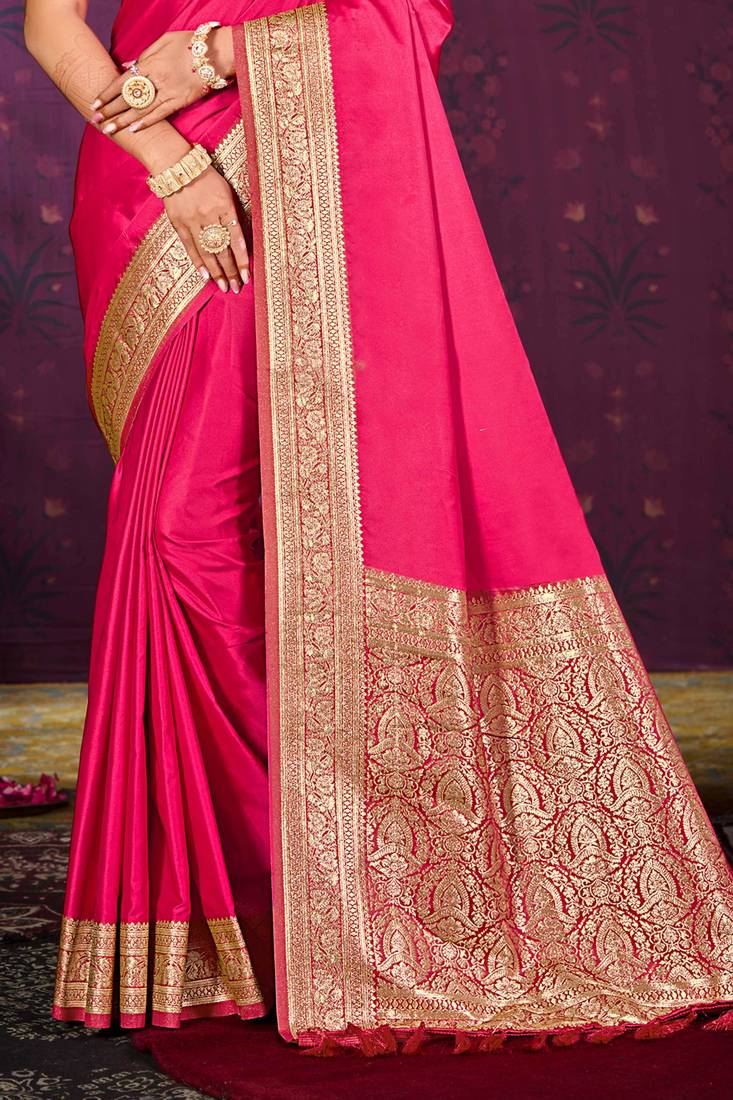Ruby pink silk blend woven work traditional saree