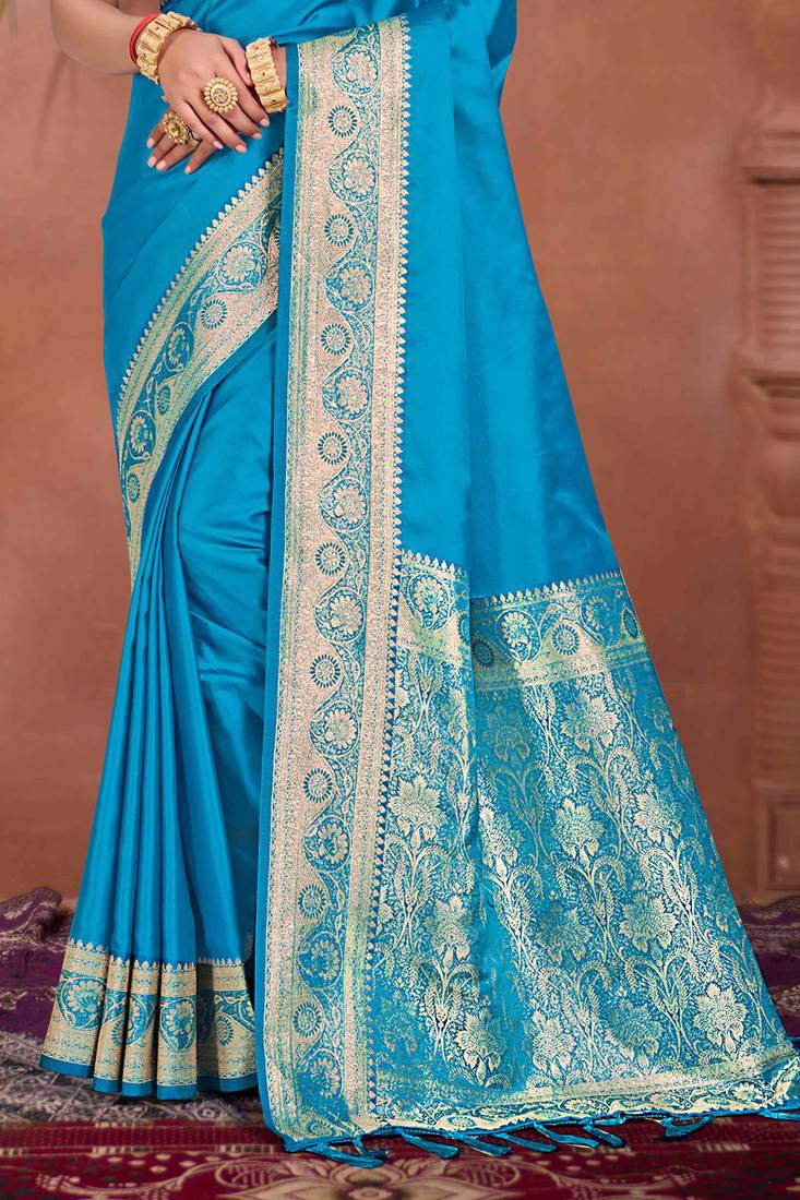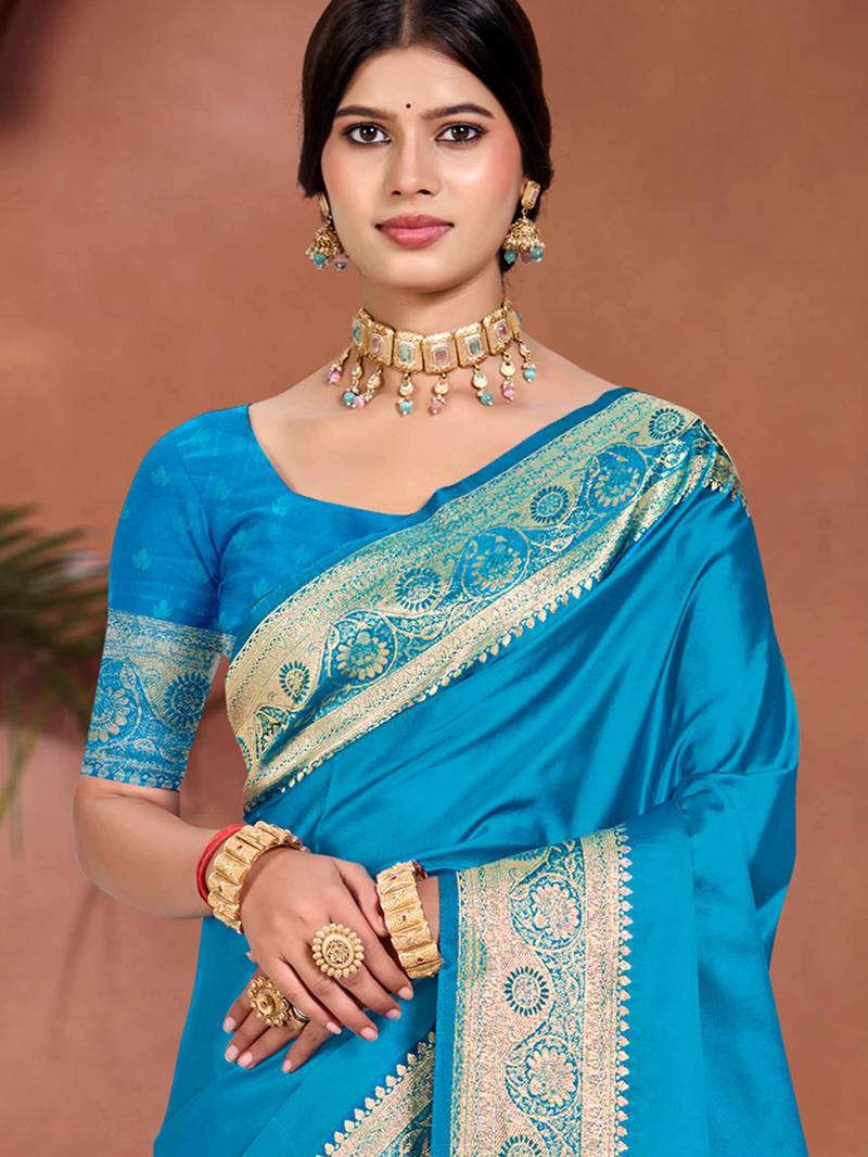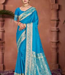 Sky blue silk blend woven work traditional saree