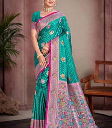 | Product Name | Teal Blue Satin Silk Blend Woven Work Traditional Saree | |