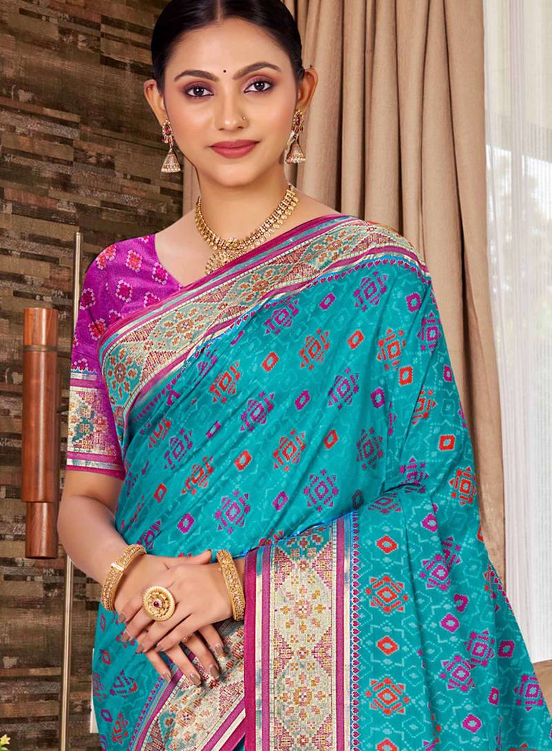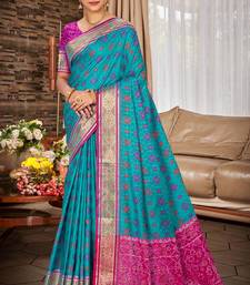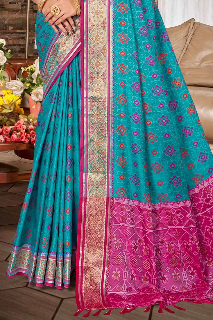 Turquoise blue patola silk blend woven work traditional saree
