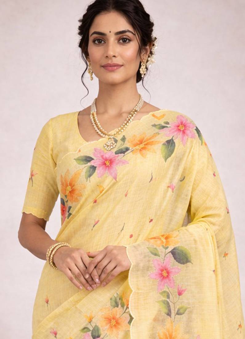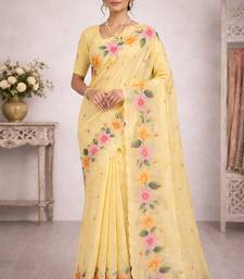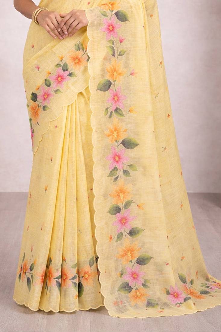 | Product Name | Sangam Prints Yellow Cotton Print Woven Work Traditional Saree | |