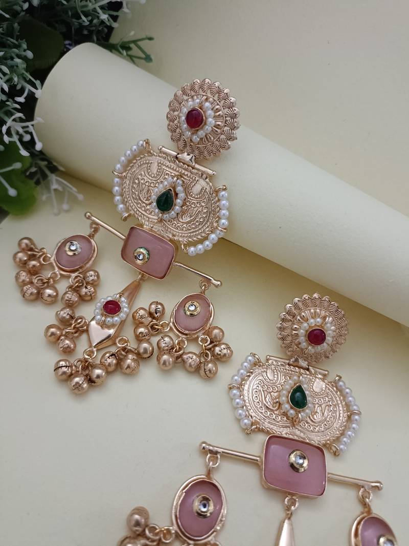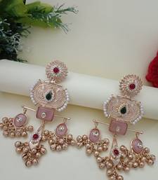 | Product Name | Gold Plated Pachi Kundan Studded Ghungaroo Kashmiri Pink Drop Earrings | |