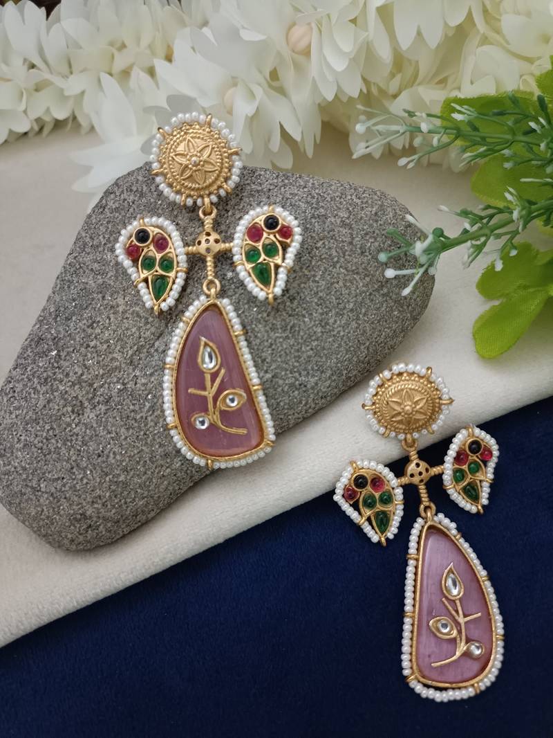 | Product Name | Gold Plated Pachi Kundan Studded Peacock Pink Drop Earrings | |