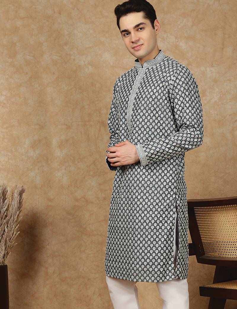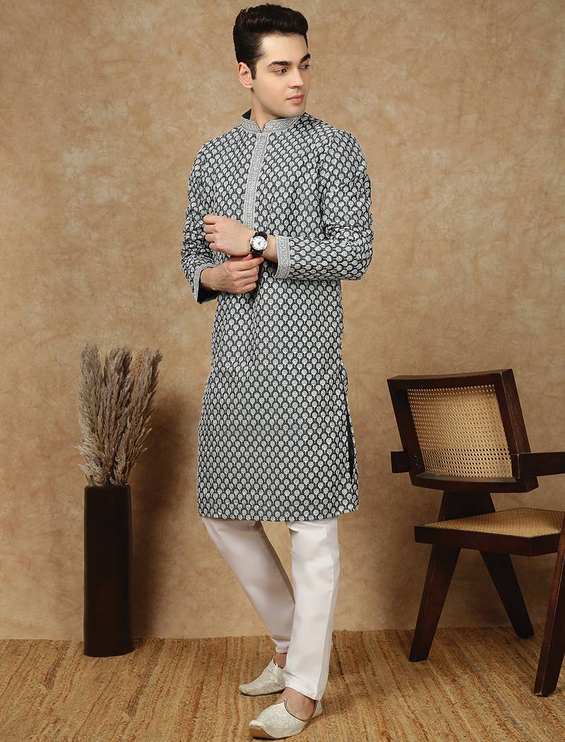 Product Name | Black Cotton Floral Kurta For Men | |
