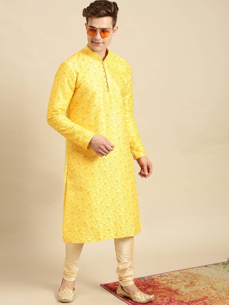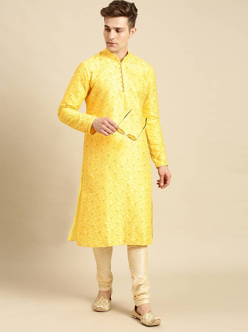 | Product Name | Embroidered Designer Art Silk Sunflower Color Kurta Set. | |