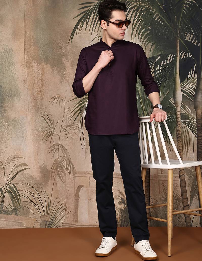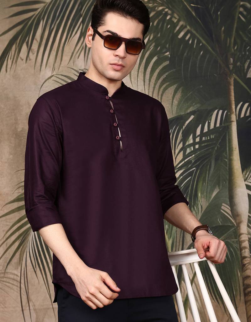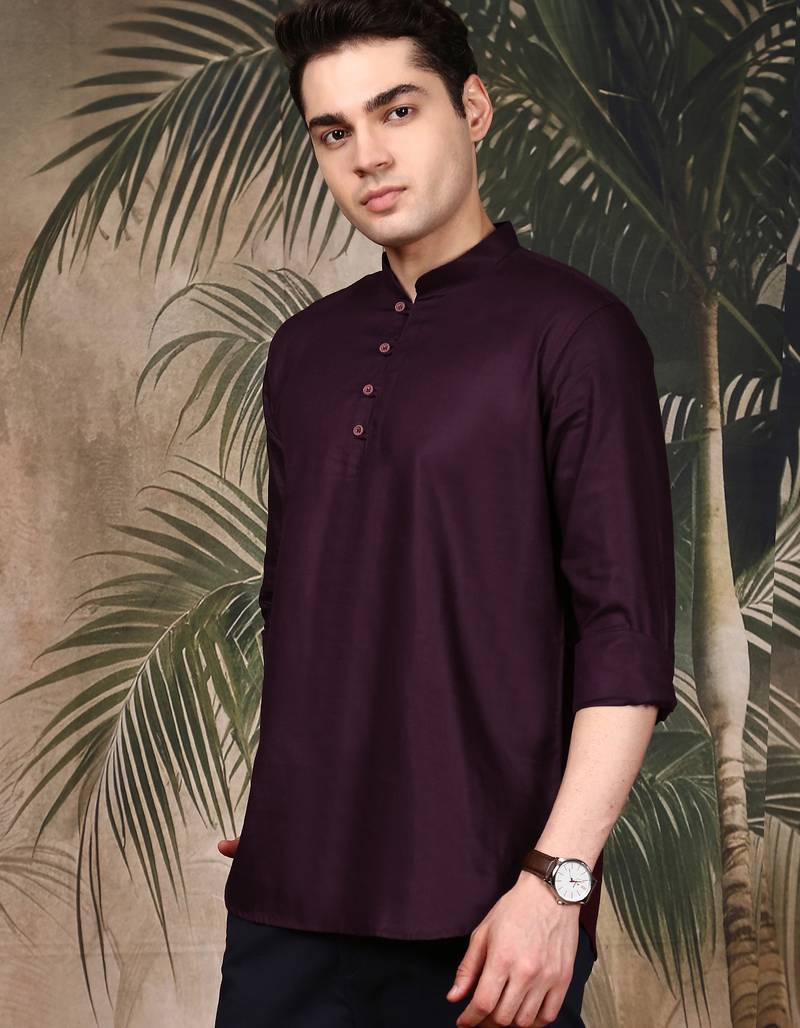 Product Name | Purple Silk Blend Embroidered Short Kurta For Men | |