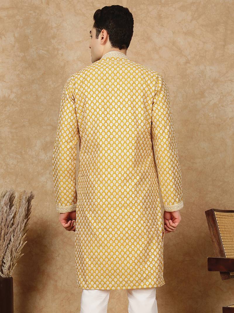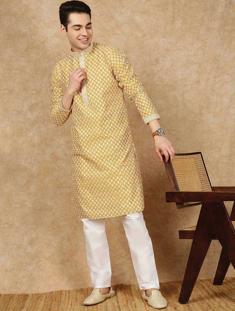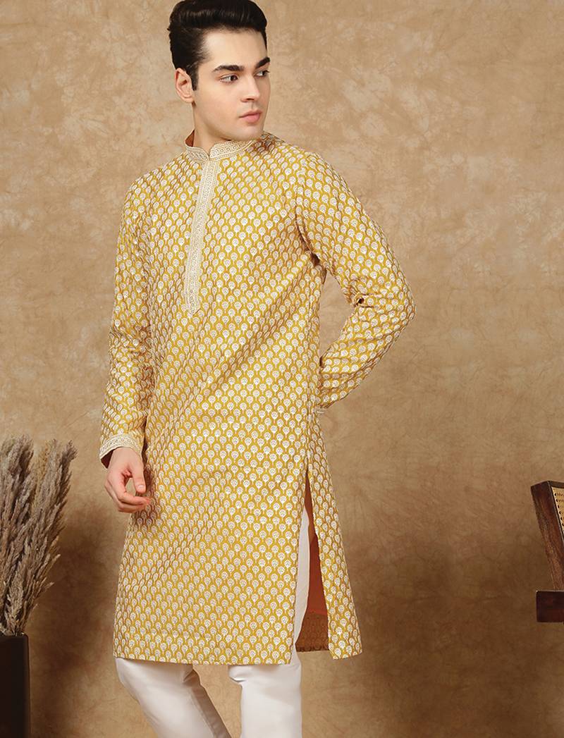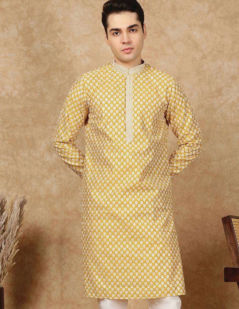 Product Name | Yellow Cotton Floral Kurta For Men | |