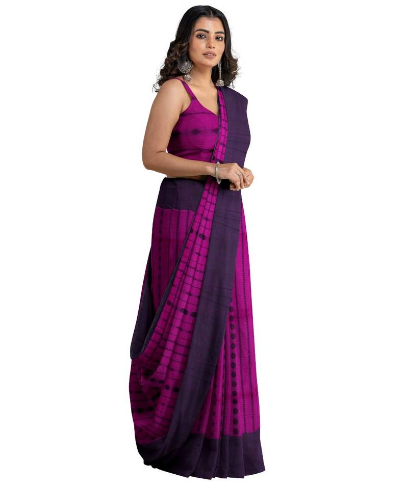 | • | Saree | : | Color- Purple / Fabric- Pure Cotton |