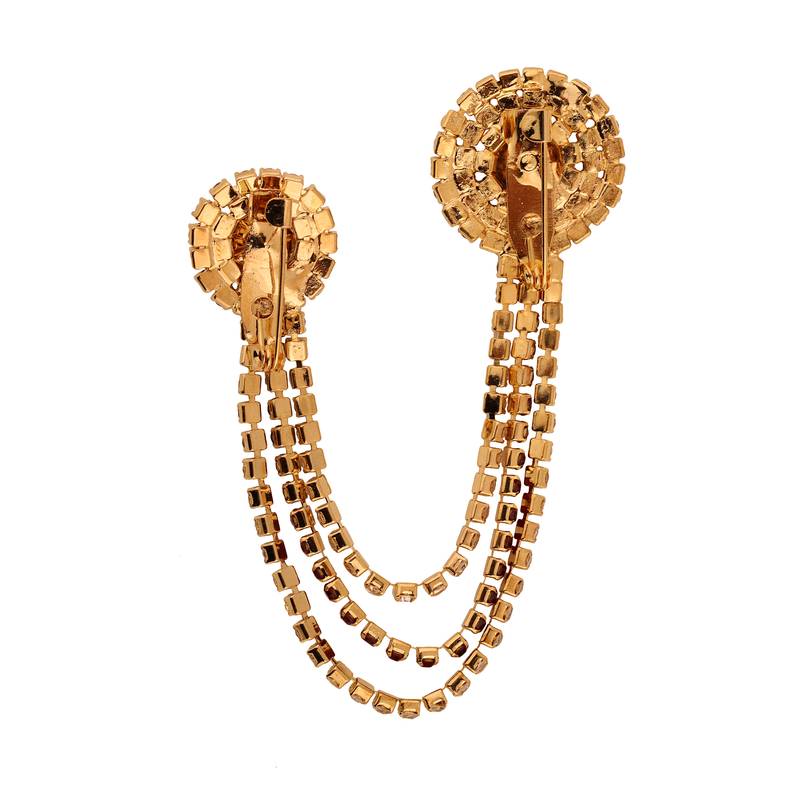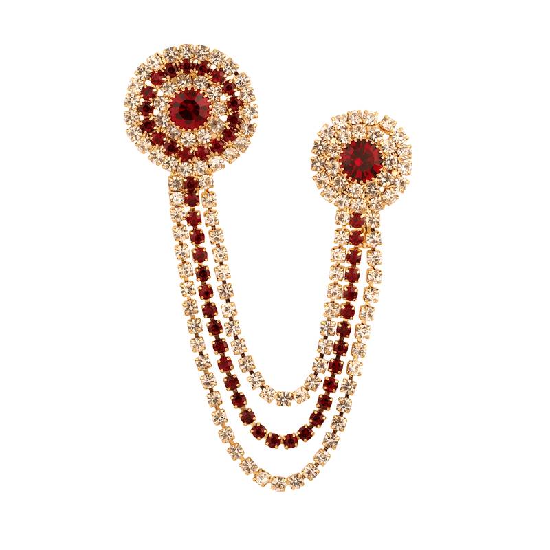 | Product Name | Embellished American Diamond Rhinestone Gold Party Round Shape Long Brooch For Men Women | |