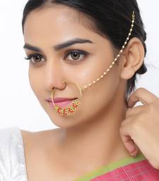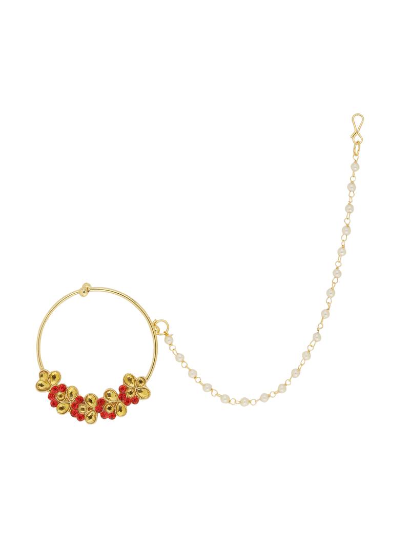 | Product Name | Sasha Gold Plated Red Kundan Studded & Beaded Chained Non Piercing Nose Pin | |