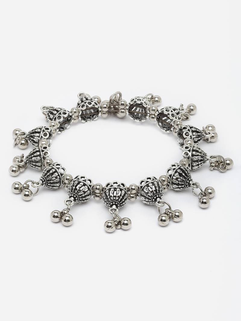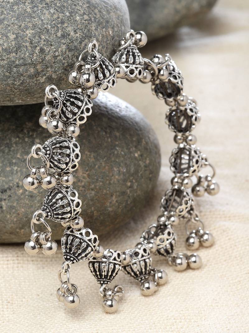 | Product Description | Celebrate The Rhythmic Allure Of Sanjog Ghungroo Elegance Bangle. The Ghungroo Style Silver Droplets And Intricate Carvings Exude Charm And Grace, Perfect For Expressing Your Artistic Spirit. Slip It On With Ease, And Let This German Silver Bangle Create An Aura Of Sophistication, Making It A Delightful Statement Piece For Any Occasion. |