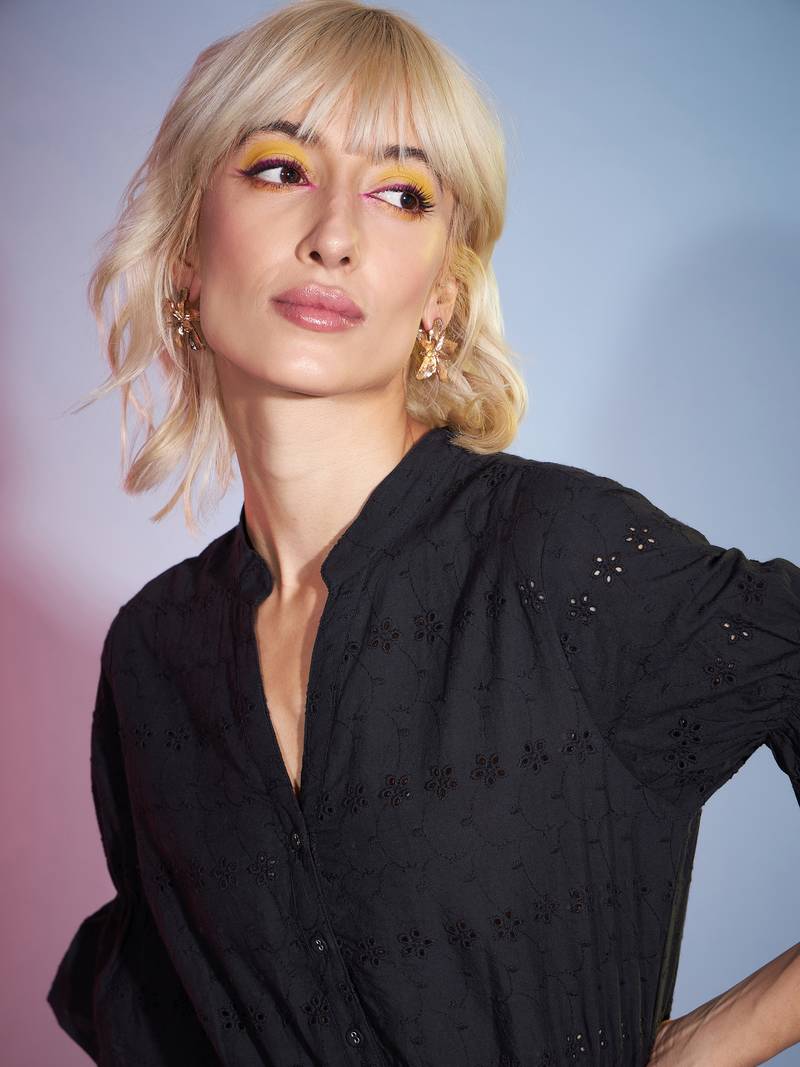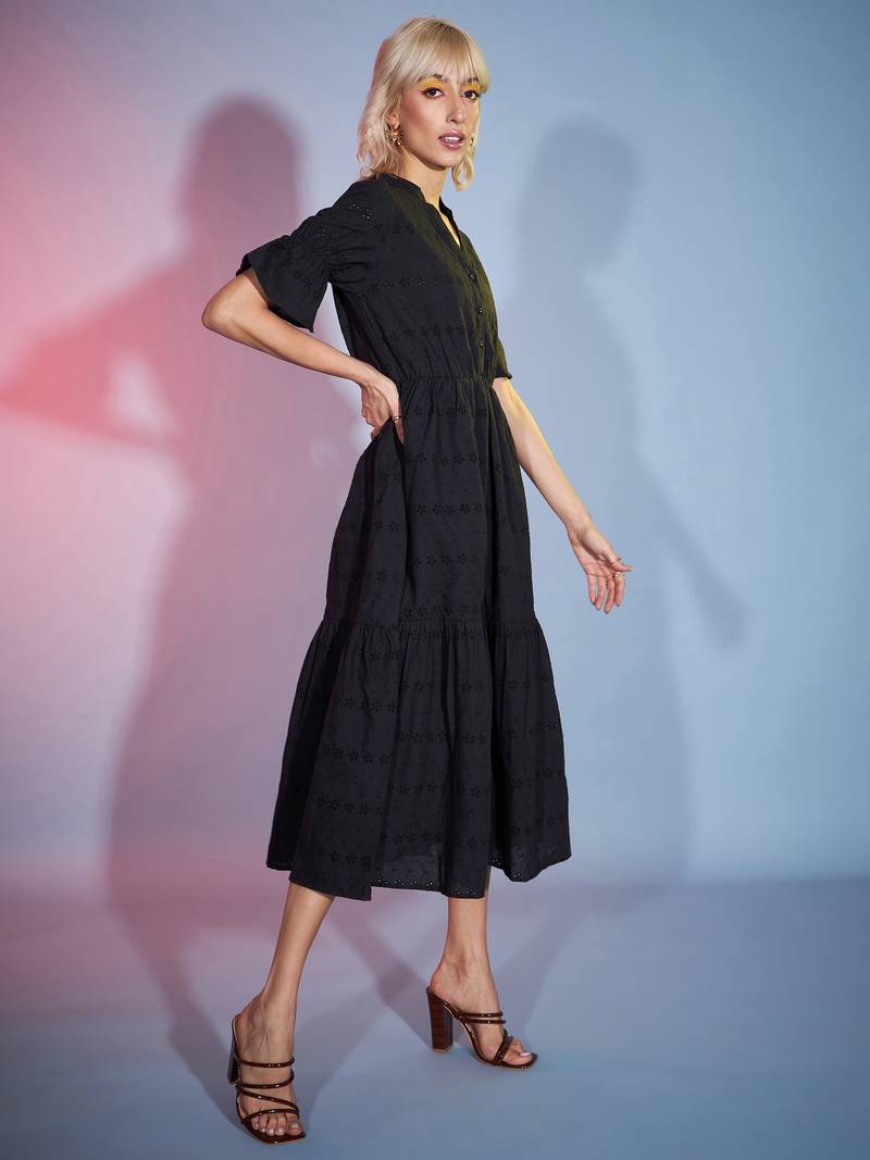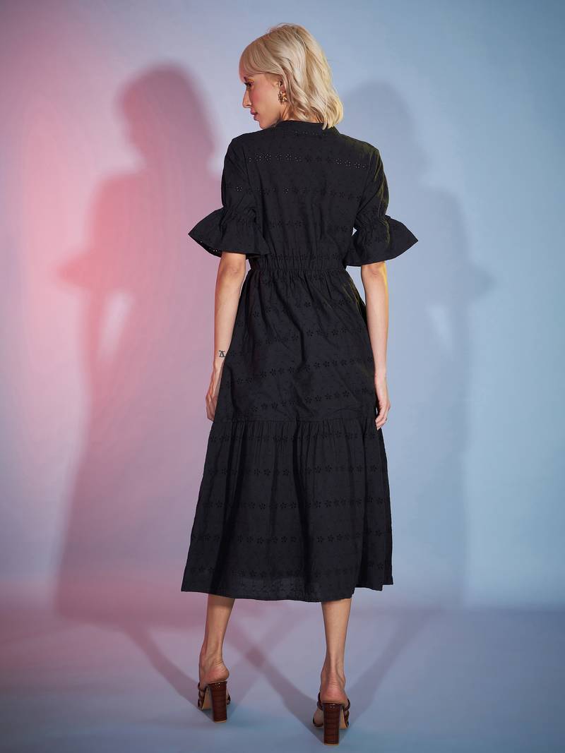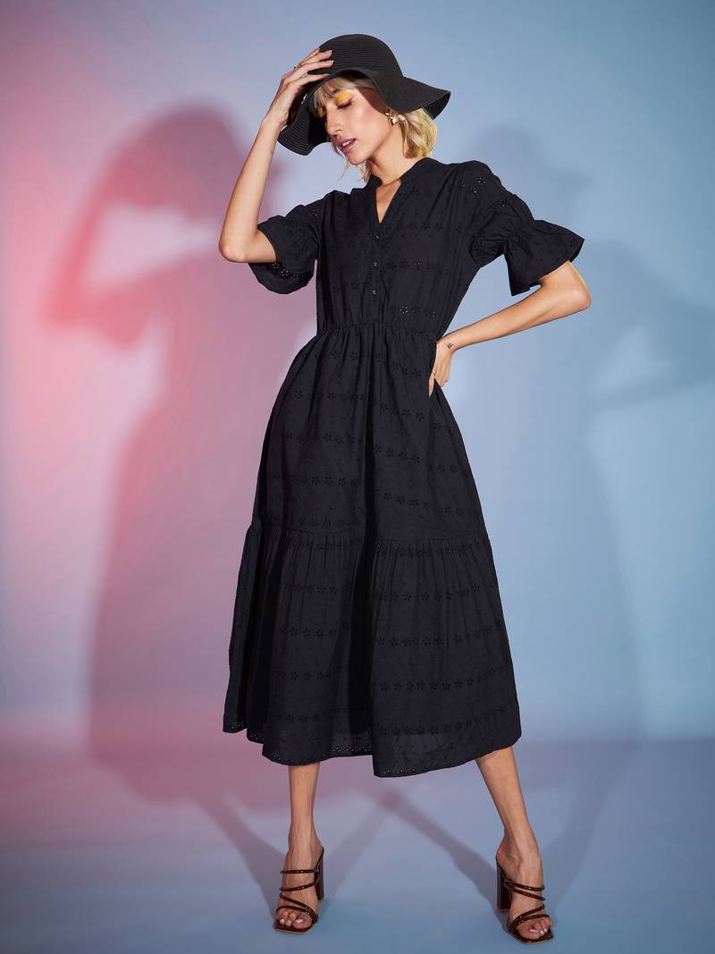 | Product Name | Black Schiffli Tiered Midi Dress | |