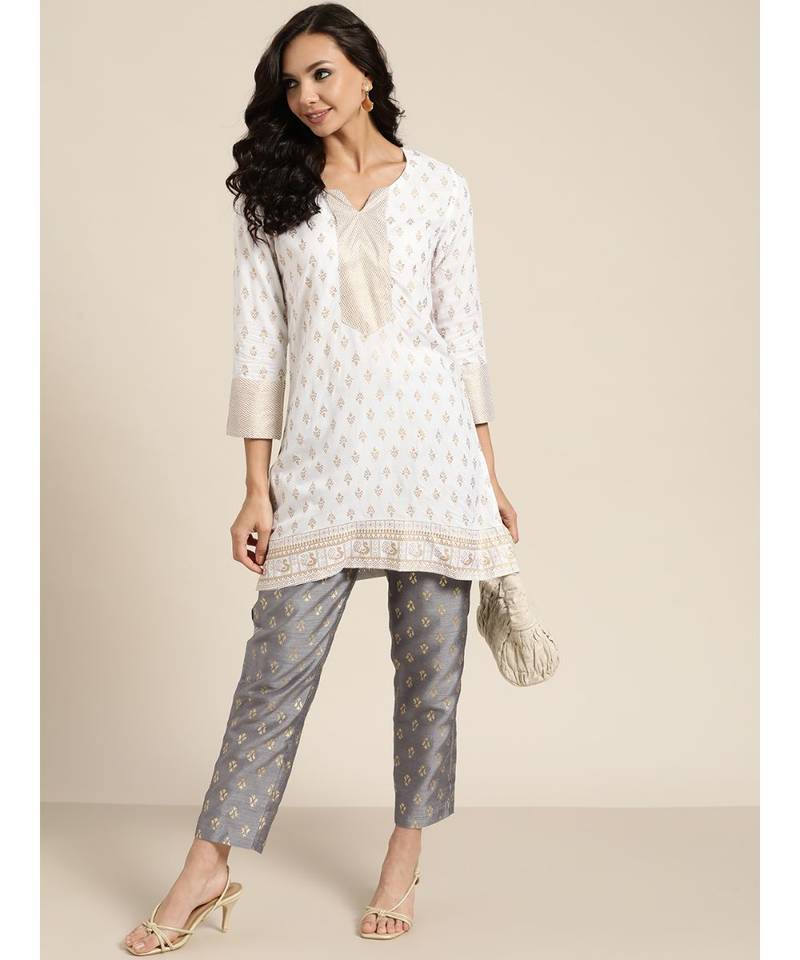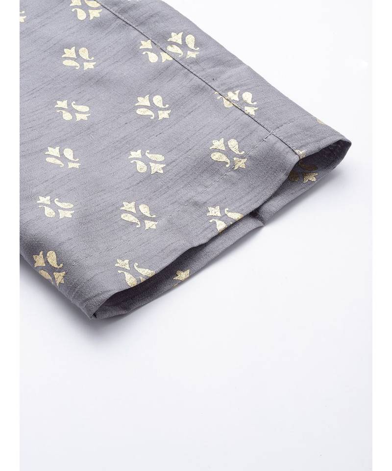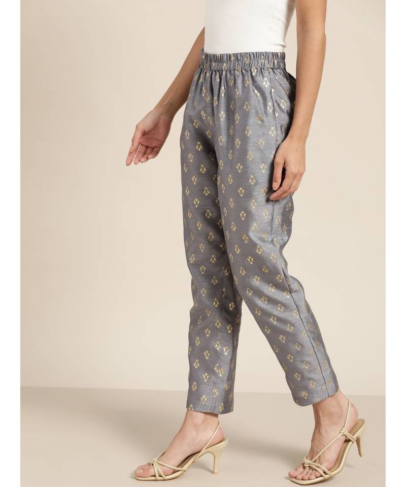 | Product Description | Grey Foil Print Kali Palazzo Pants In Rayon Fabric Unlined Full Length Comfort Fit Elasticated Waistband Flared Hemline And Features Drawstring Detail At Waistband |