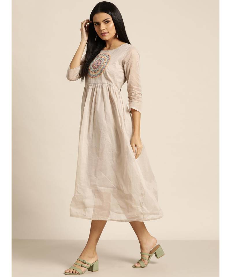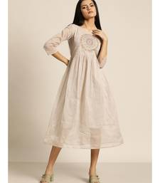 | Product Description | Taupe Embroidered Organdy Dress, In Organdy Fabric, Cotton Lining, Calf Length, Fit & Flare, Button Closure, Straight Hemline And Features Multi Colour Thread Embroidery At Front |