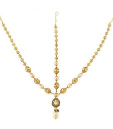 | Product Description | Gold Plated Ball And Pearl Mathapatti Indian Wedding Jewellery. Wedding Jewellery Maang Tikka / Matha Patti. Festive Wear Matha Patti. |