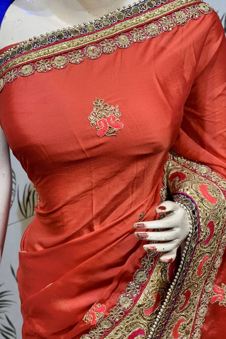 | Product Name | Chiffon Silk Wedding Wear Saree In Red With Embroidery Work & Handwork | |