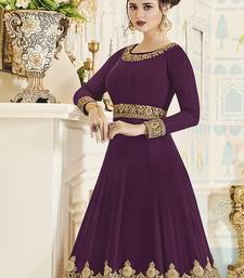 Georgette salwar kameez in purple color with embroidery and crystal stone work semi stitched