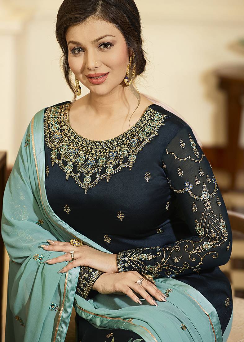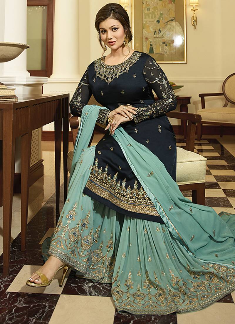 | Product Name | Georgette Sharara In Blue Color With Embroidery And Crystal Stone Work | |