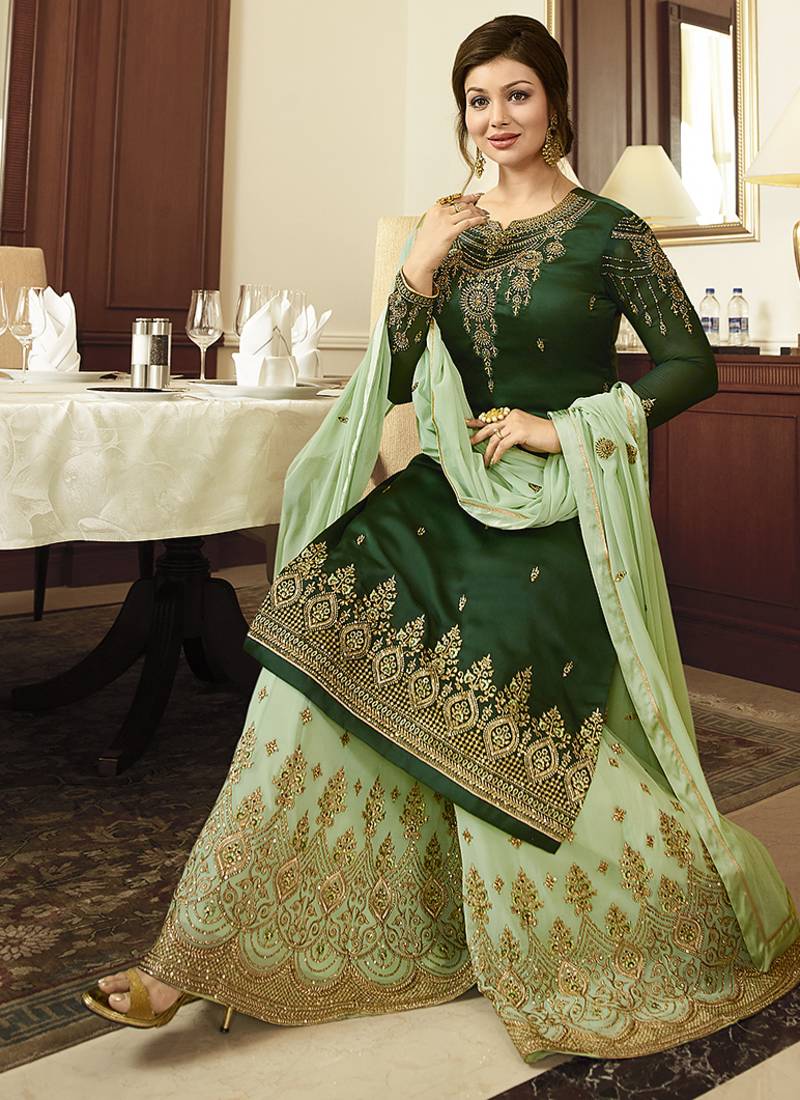 | Product Name | Georgette Sharara In Green Color With Embroidery And Crystal Stone Work | |