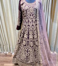 Maroon pure art silk wedding gown with embroidery and crystal work semi stitched