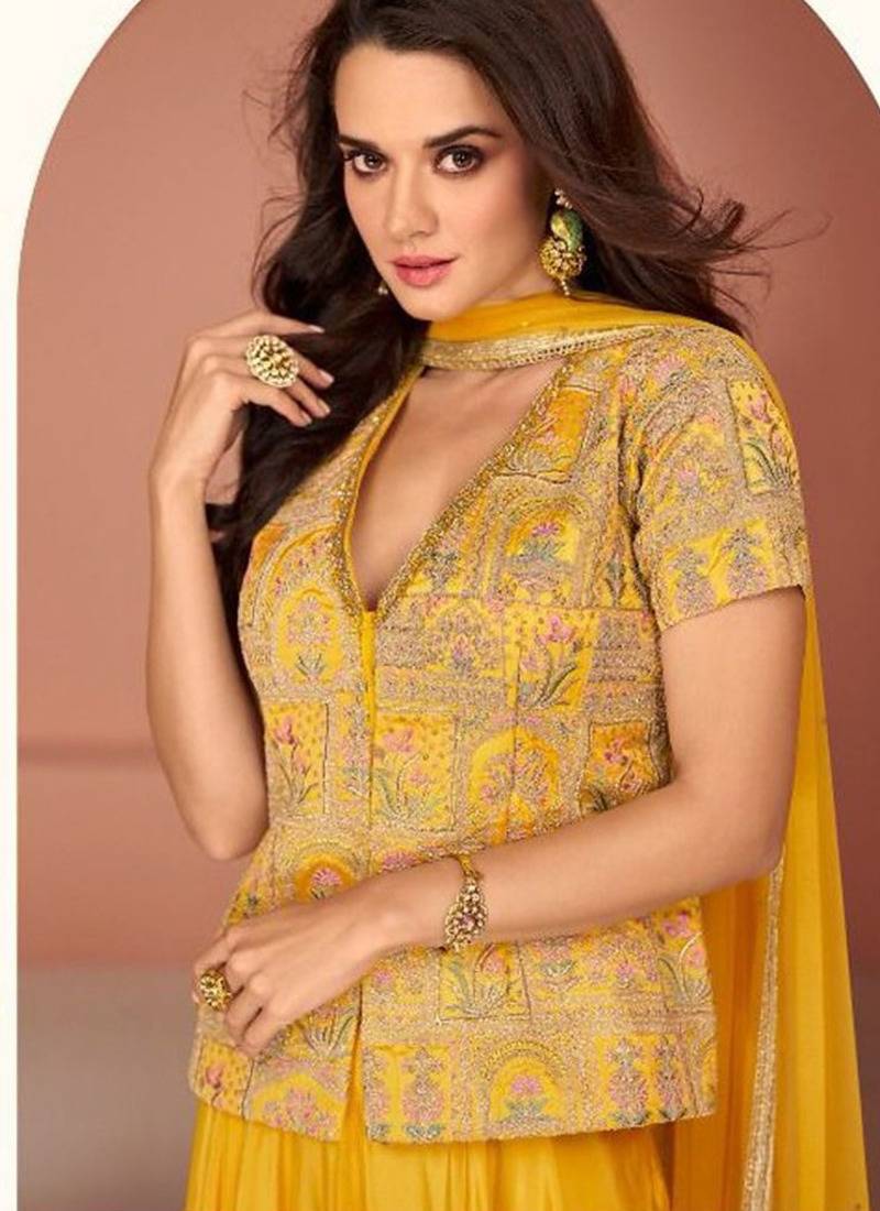 | Product Name | Yellow Embroidered Georgette Semi Stitched Party Wear Sharara | |