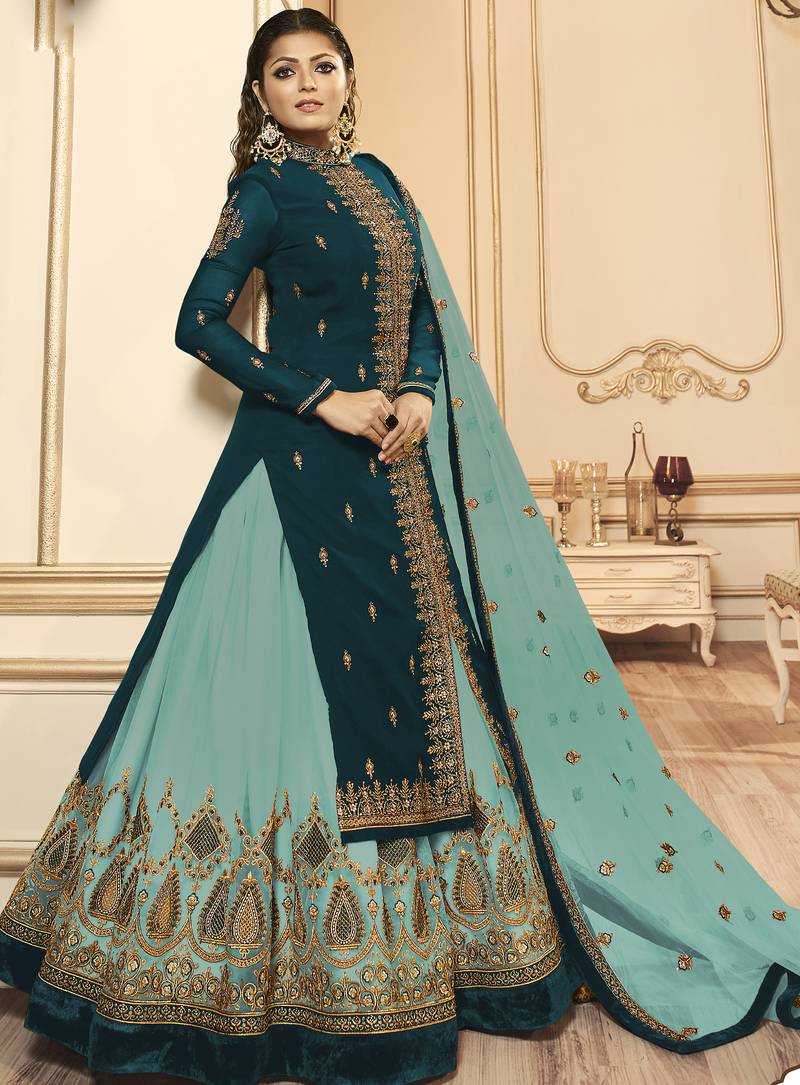 | Product Name | Dark Blue Georgette Silk Sharara With Crystal Work | |