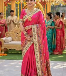 Silk wedding wear saree in pink with embroidery work & crystal stone work
