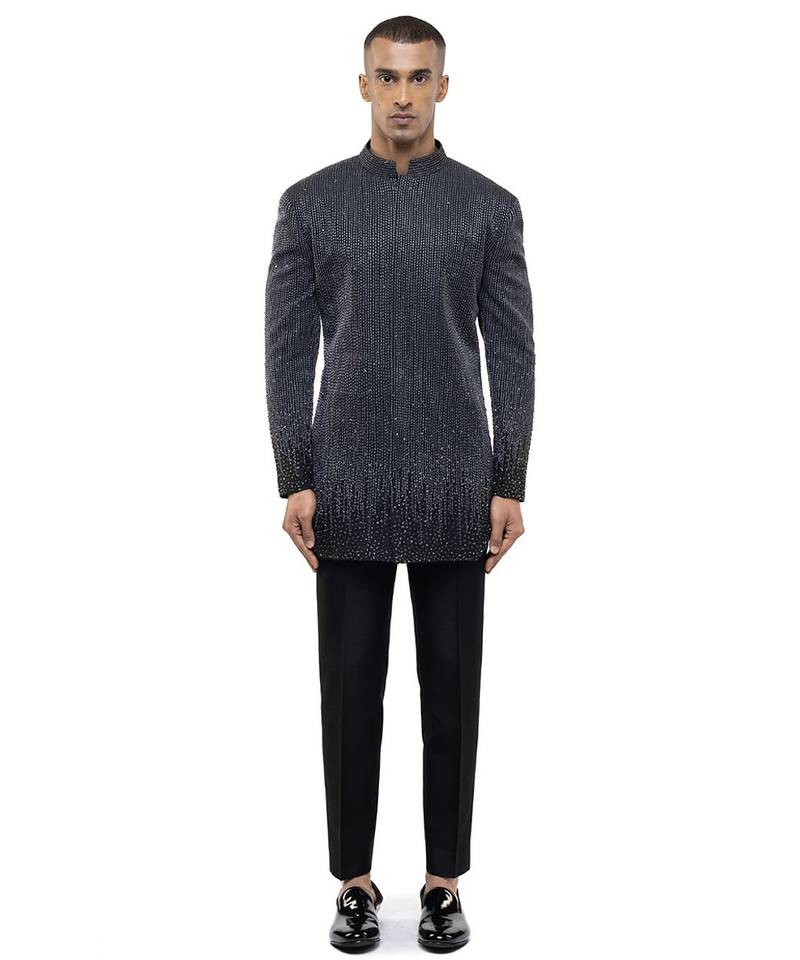 | Product Description | This Black Embroidered Silk Bandhgala Set Embodies Timeless Elegance And Royal Sophistication. Crafted From Luxurious Silk Fabric, It Features Intricate Embroidery That Enhances Its Refined Appeal. Perfect For Weddings And Festive Occasions, It Offers A Structured Silhouette, Premium Comfort, And Classic Ethnic Charm.