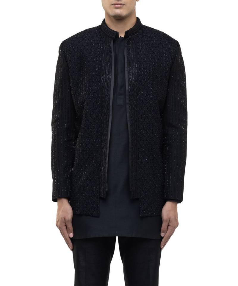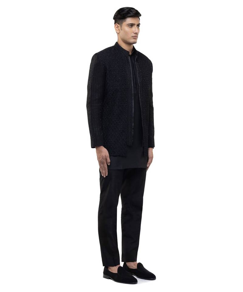 | Product Name | Black Embroidered Silk Bandhgala Set | |